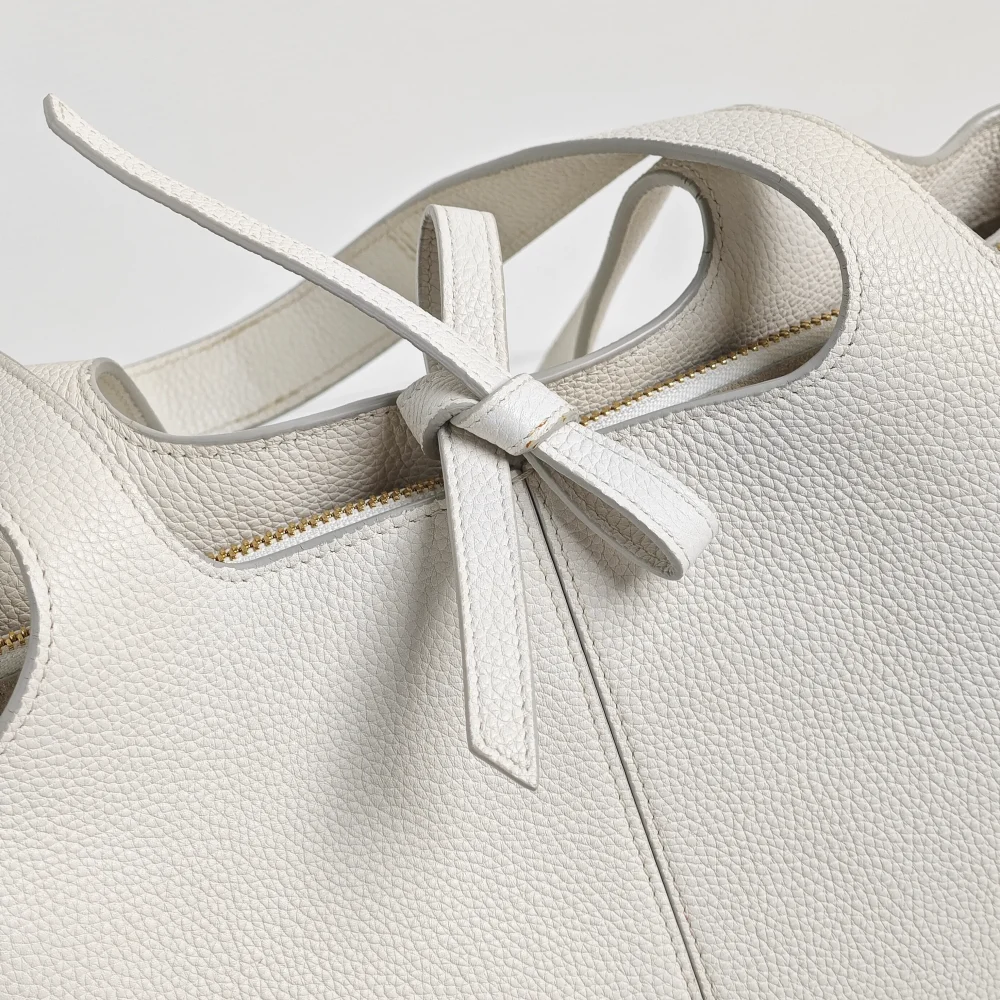 The leather laces can be tied up to change the bag’s shape, or simply leave them off for a relaxed, spontaneous look.