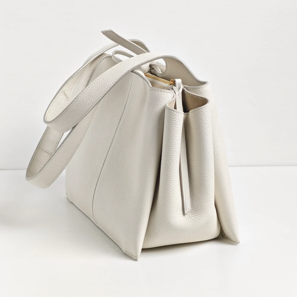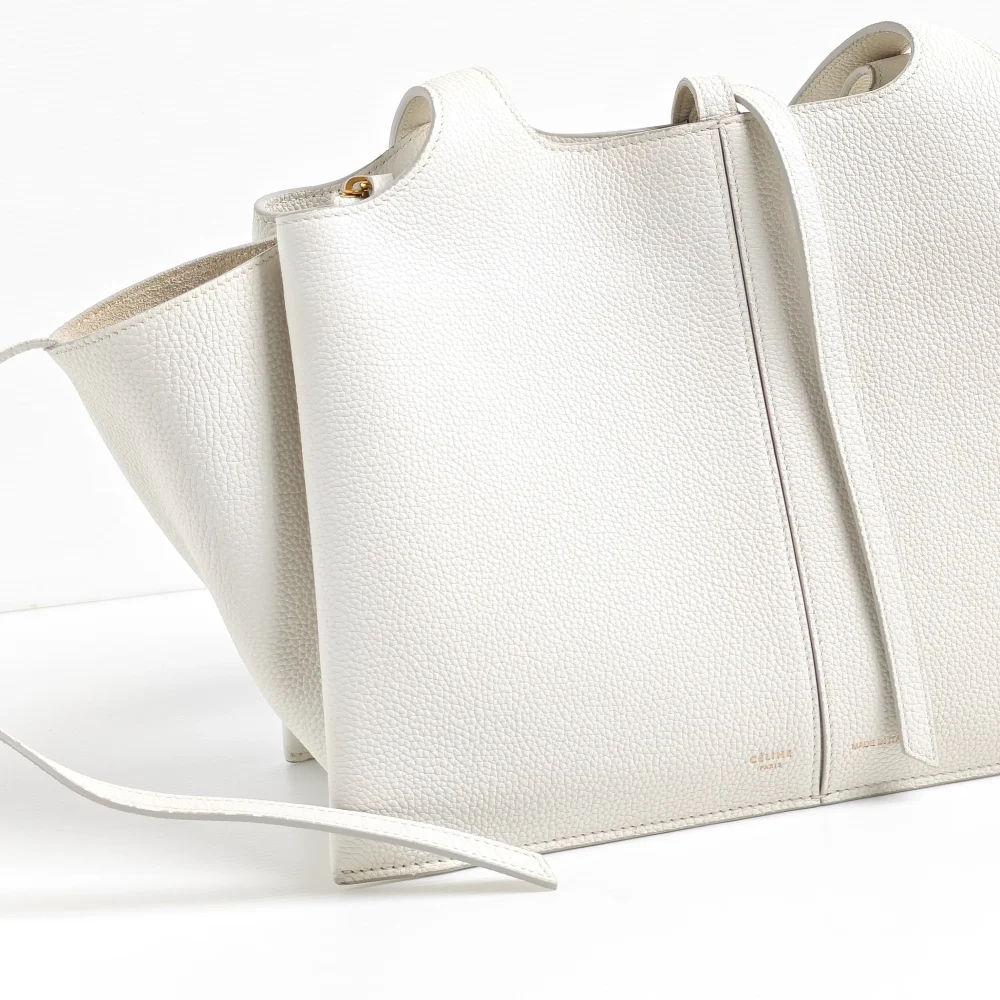 Structural look and details are the essences of Phoebe’s Celine. Made of calfskin leather with small grain texture, it allows the bag to maintain its shape whilst still supple and flexible enough to mould on your body.