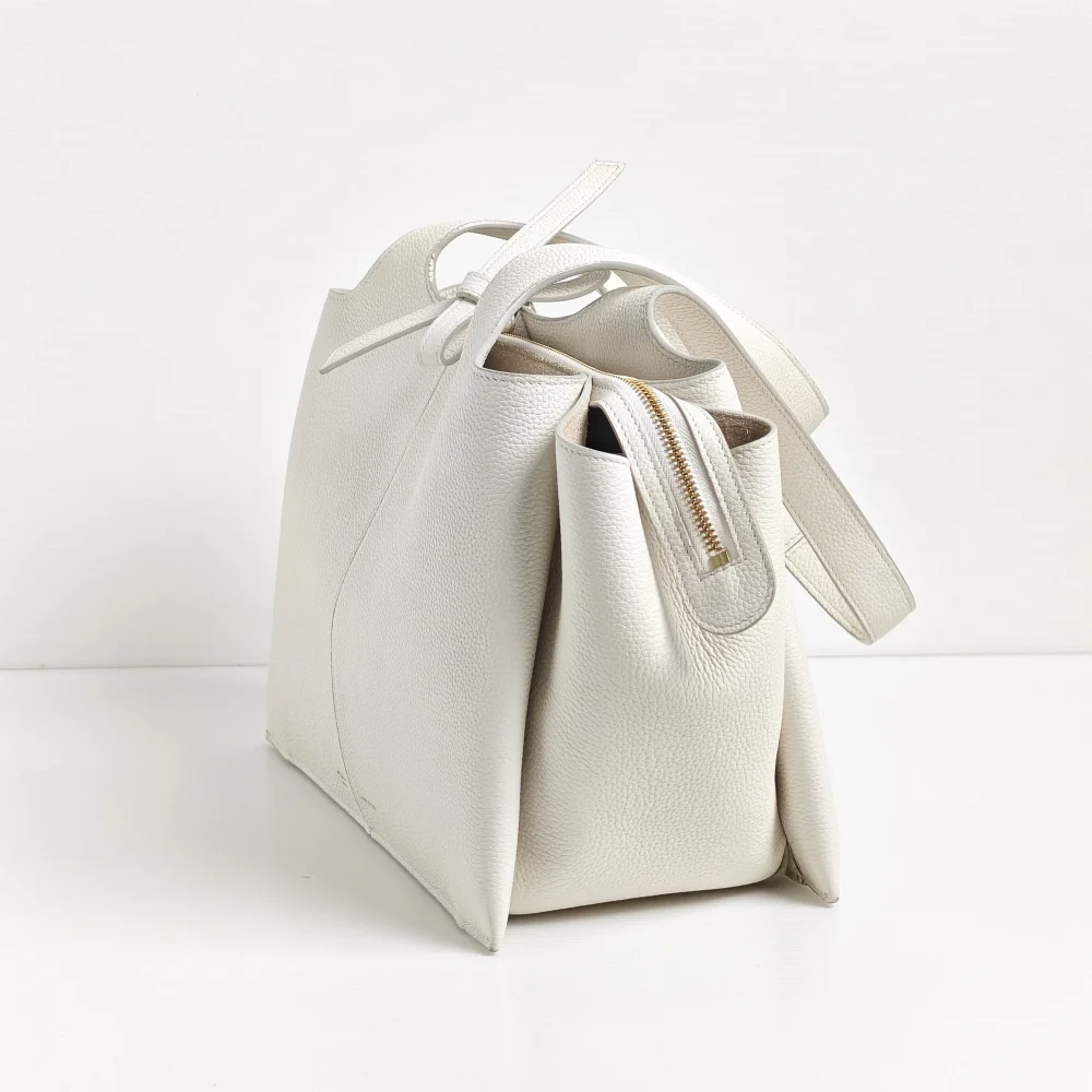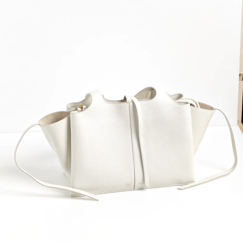 From Phoebe Philo’s Celine era, this Trifold bag whispers minimalist with its refined leather and no-hardware look. The 3 separated compartments in this tote are constructed from folds of leather, hence its name.