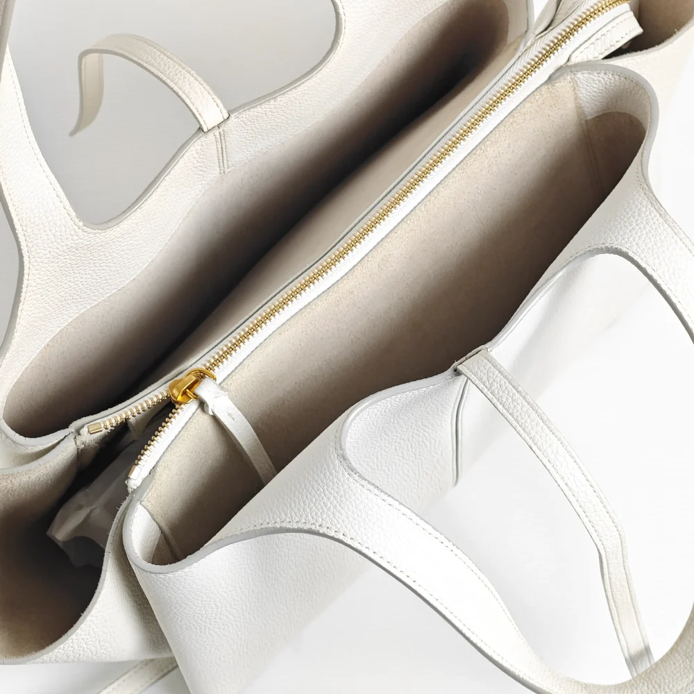 - White small grain calfskin leather.
