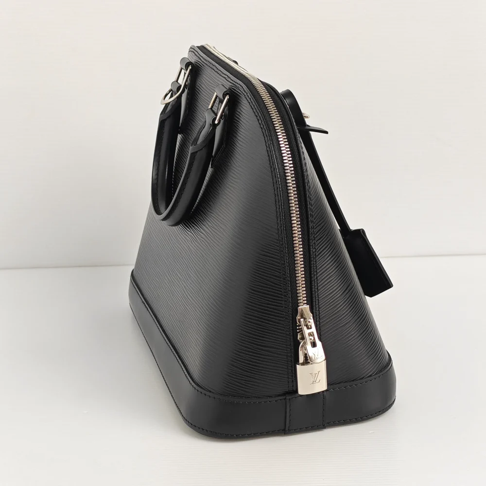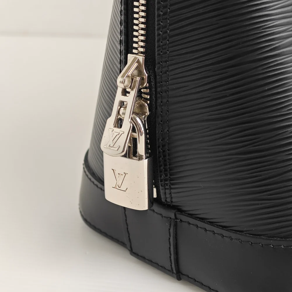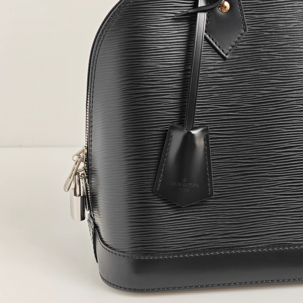 - Black “Epi” wave-textured cowhide leather.