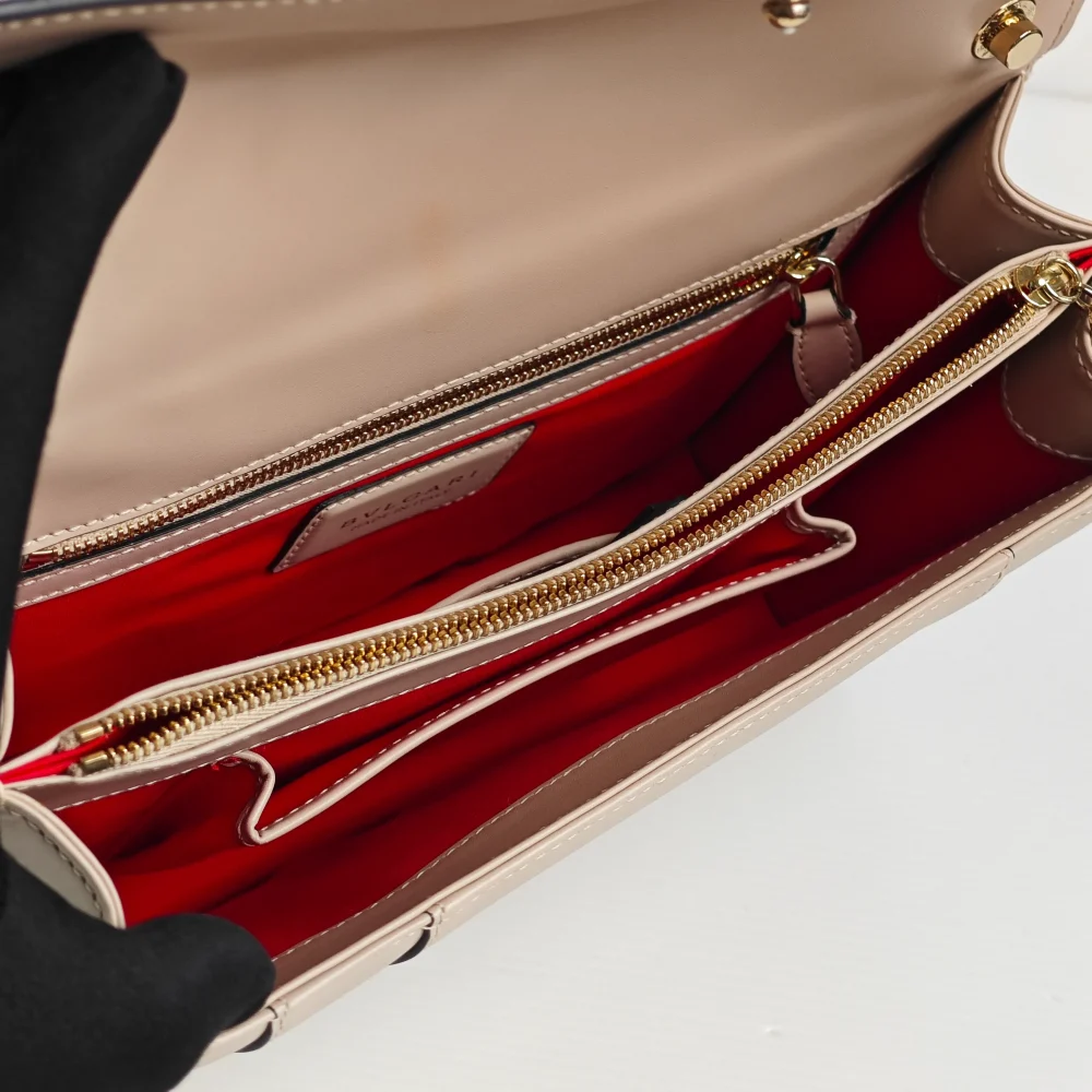 - ‘BVLGARI’ metal lettering on the back.