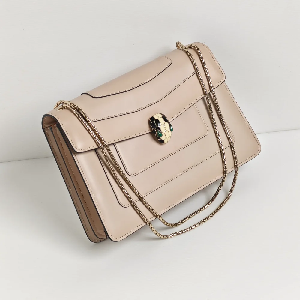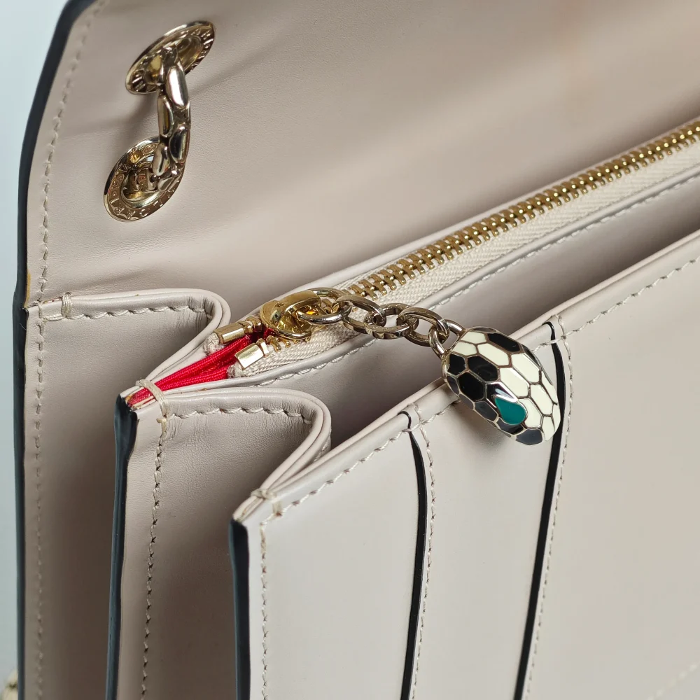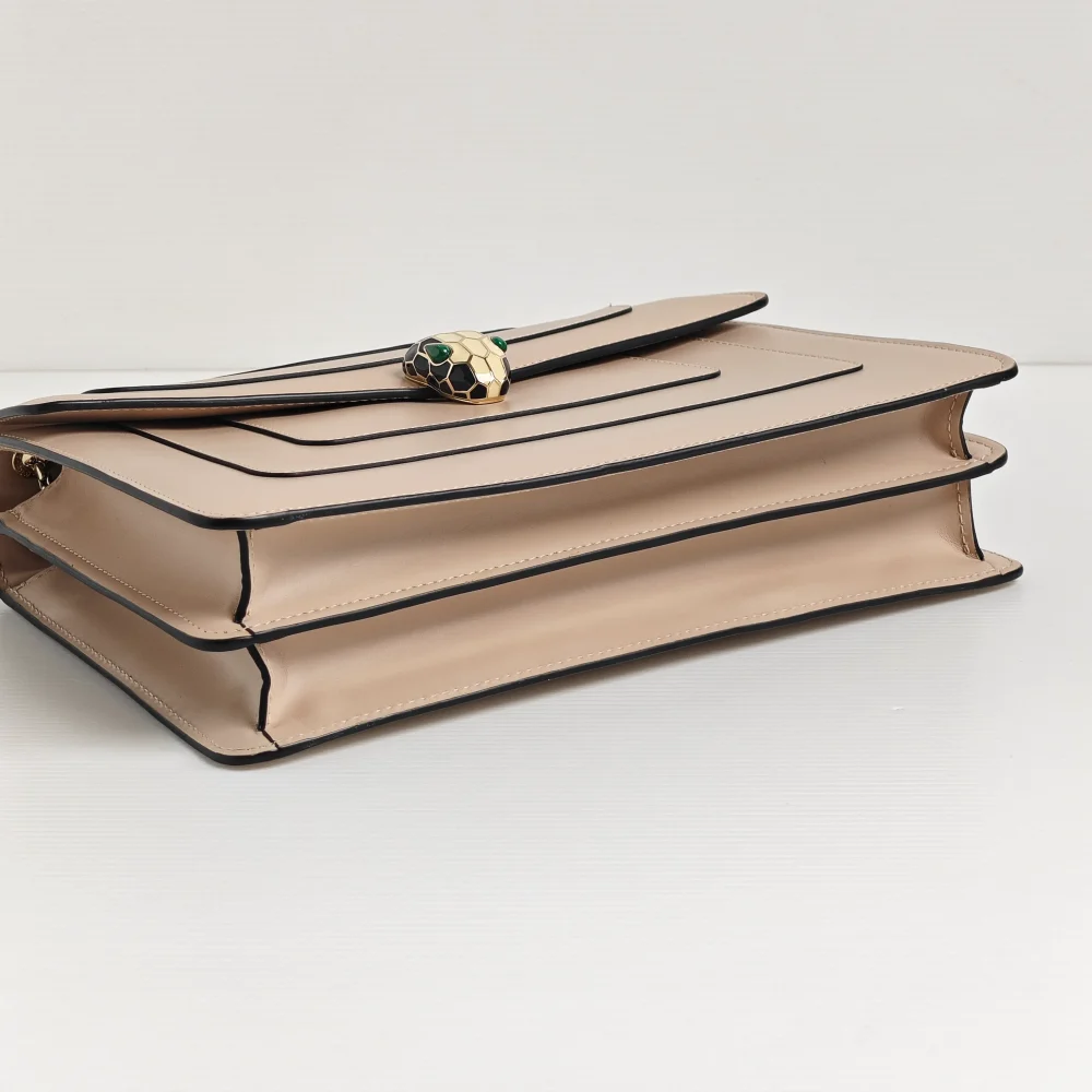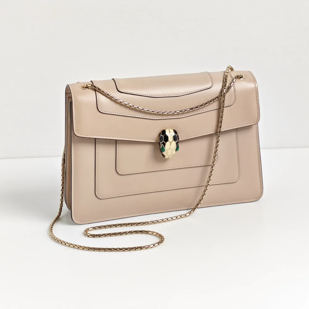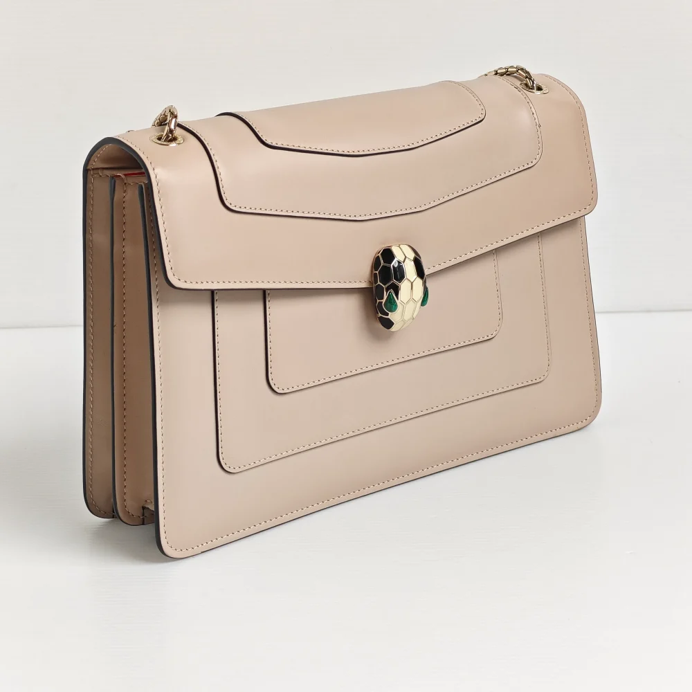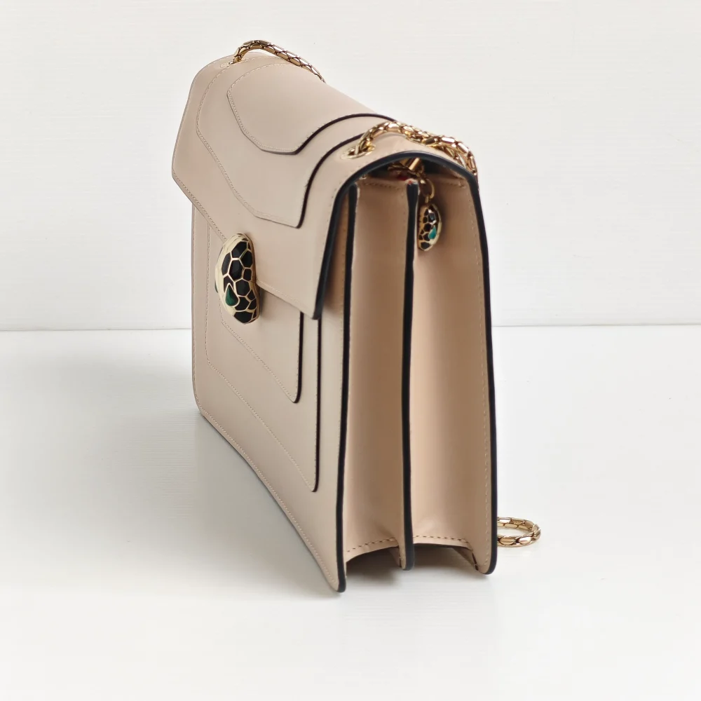 This classy BVLGARI bag demonstrates the impeccable Italian craftsmanship through smooth calfskin leather, finished with a mystique touch of hardware from the signature Serpenti collection.