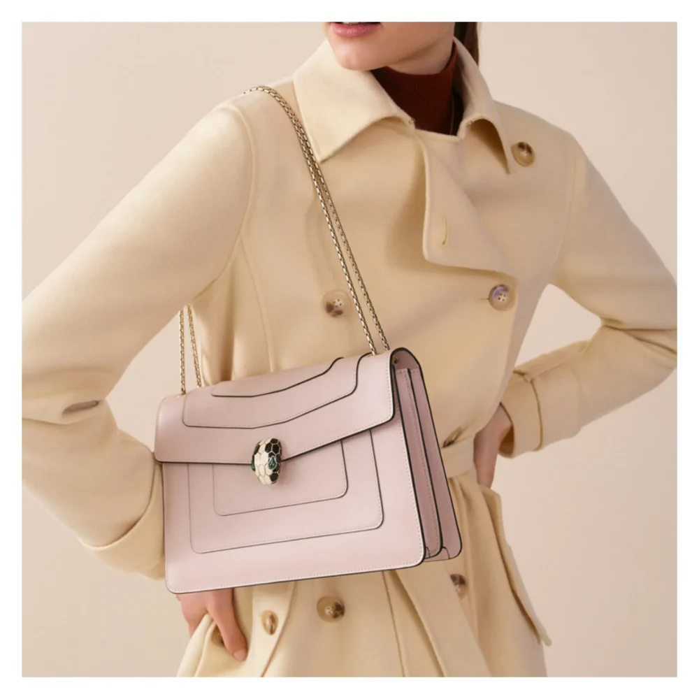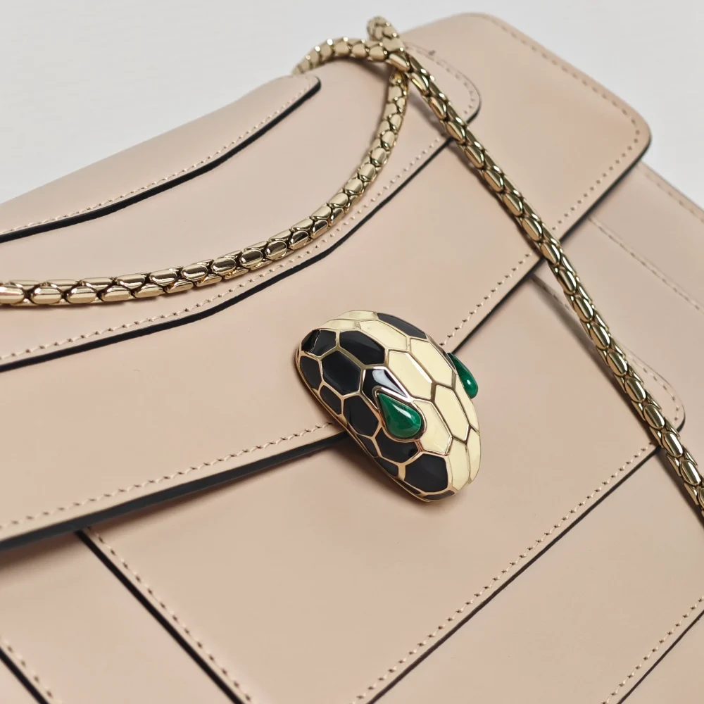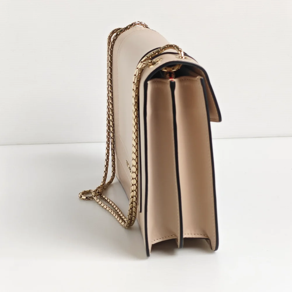 Endless possibilities of occasion – This envelope flap bag would elegantly drape on your shoulder with its long dainty chain. Agile like the serpent, it can be worn crossbody, short on the shoulder, double-chain in hand or simply as a clutch.