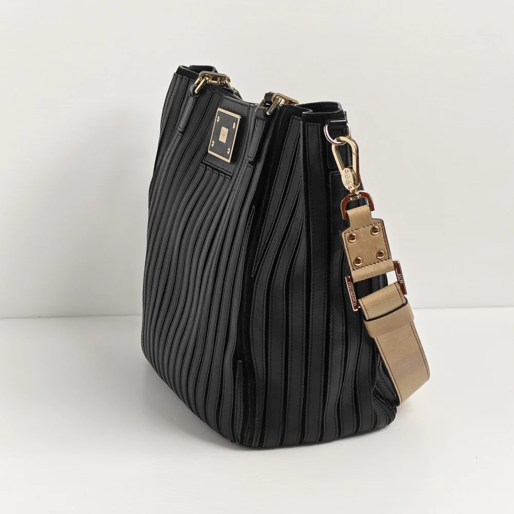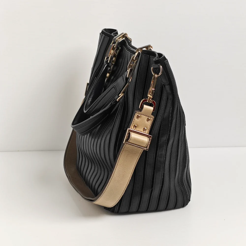 - Light gold tone hardware.