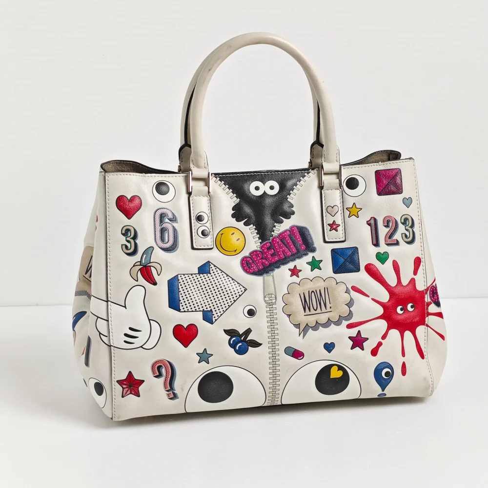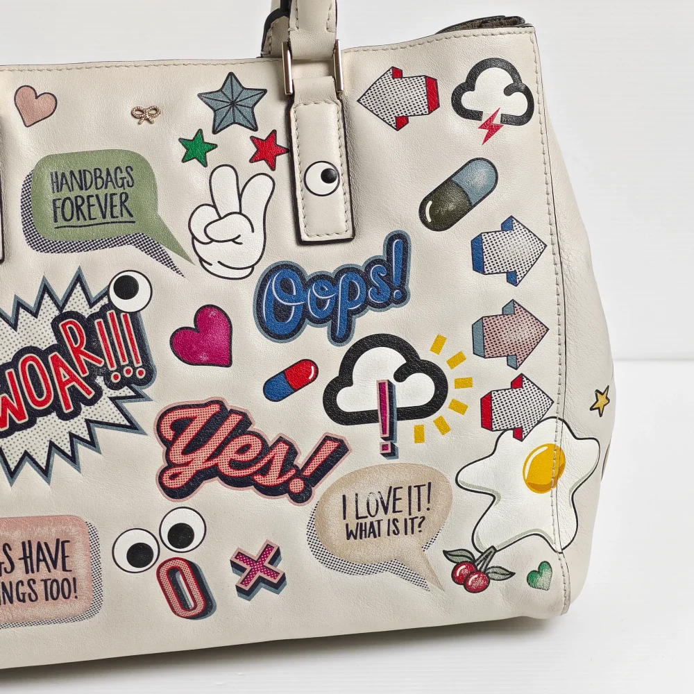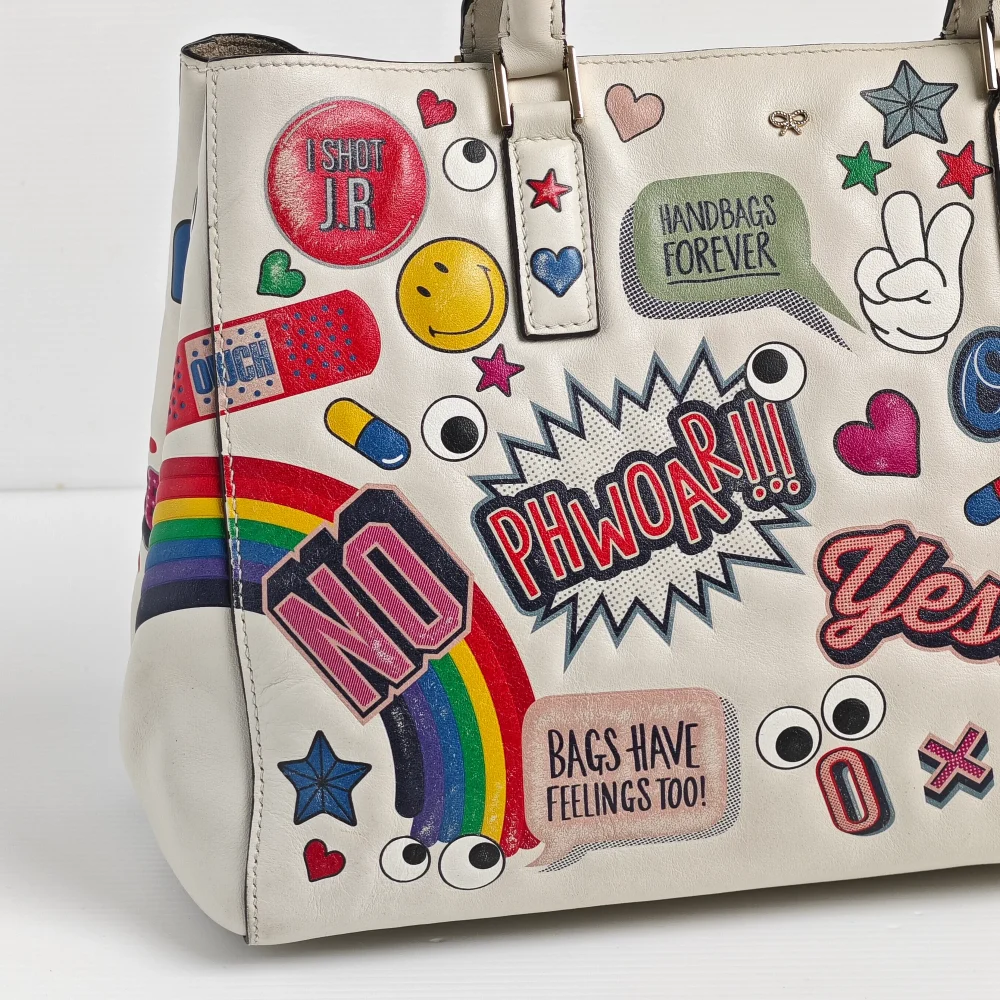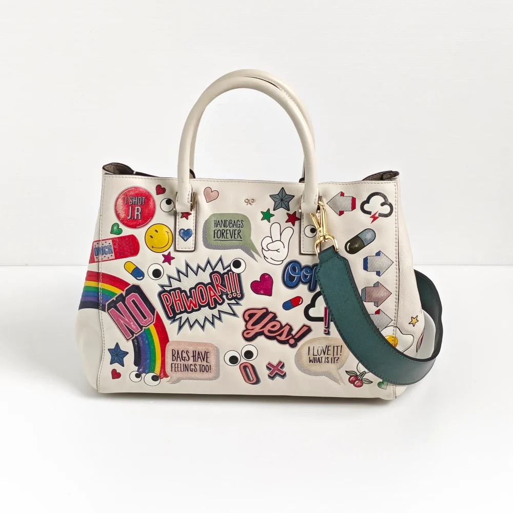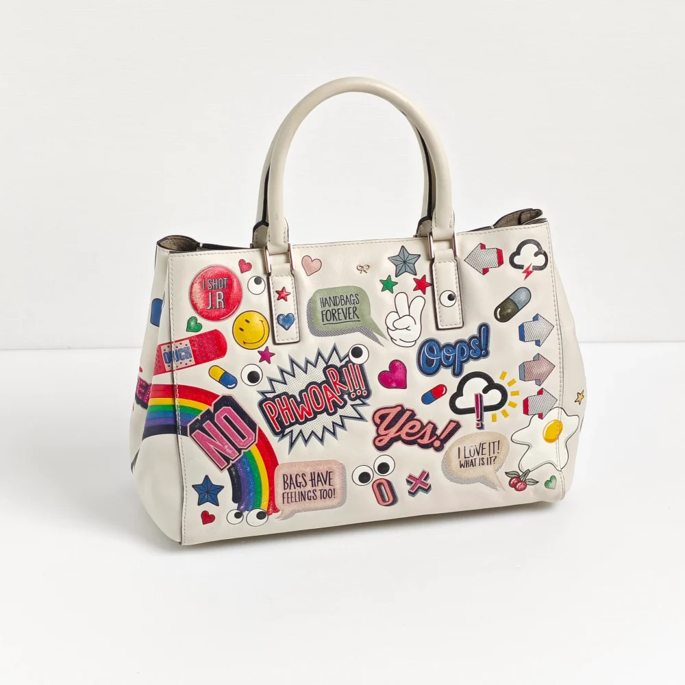 Stickers Bag, one of the most-iconic designs of Anya with its devoted cult following. This collection features playful and colourful stickers print all over the bags, a light-hearted design that guarantees to put a smile on your face whenever you see it.