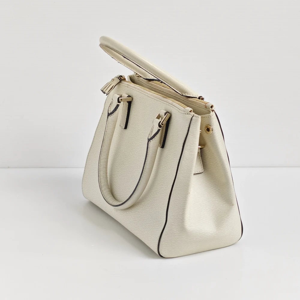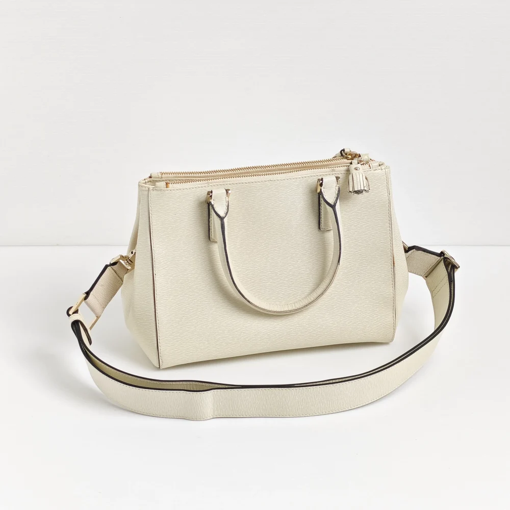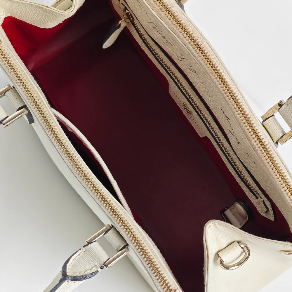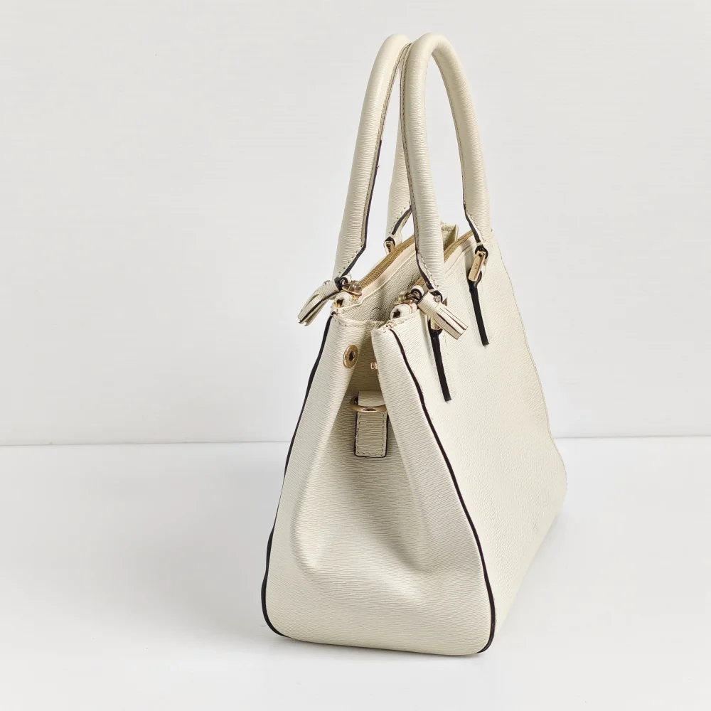 - Off white embossed-grain calfskin leather.