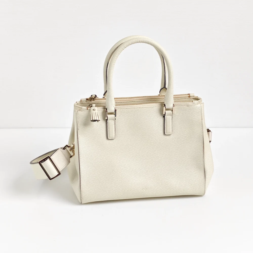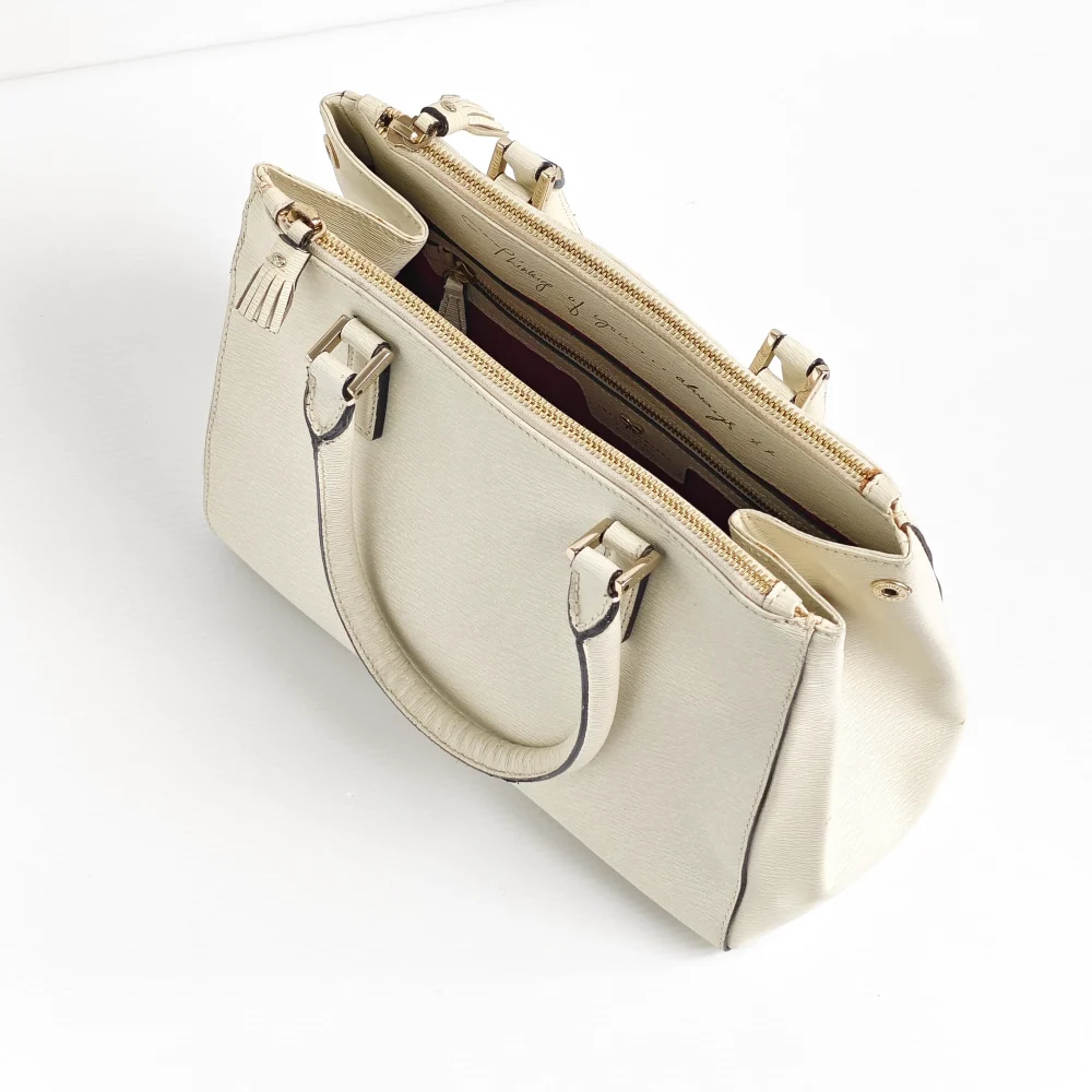 - Light gold tone hardware.