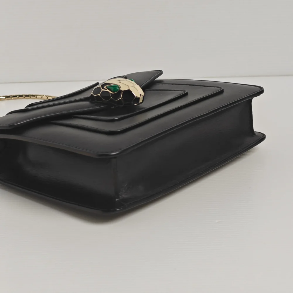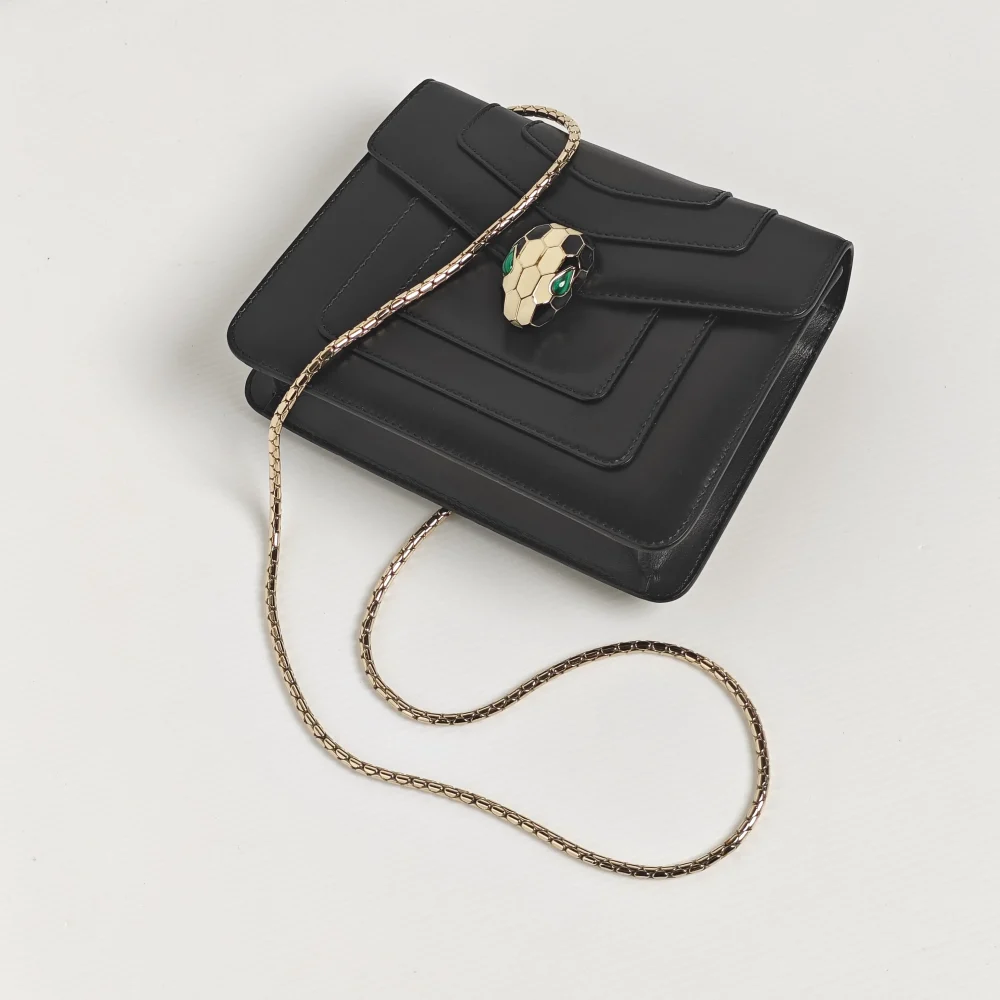 This classy BVLGARI bag demonstrates the impeccable Italian craftsmanship through smooth calfskin leather, finished with a mystique touch of hardware from the signature Serpenti collection.