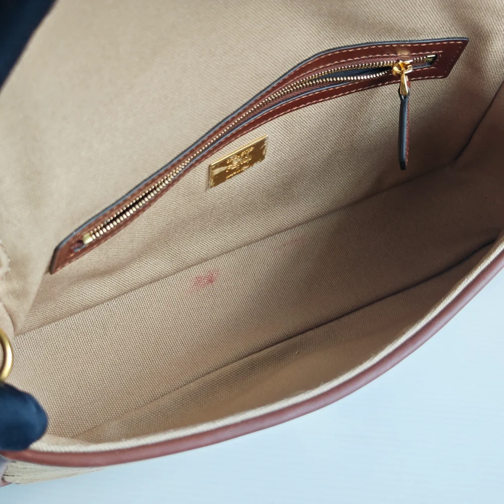 Designed with both a top handle and a detachable canvas strap, it offers multiple ways to wear: carry it in hand, style it over the shoulder, hands-free crossbody, or tuck it under your arm as a clutch.