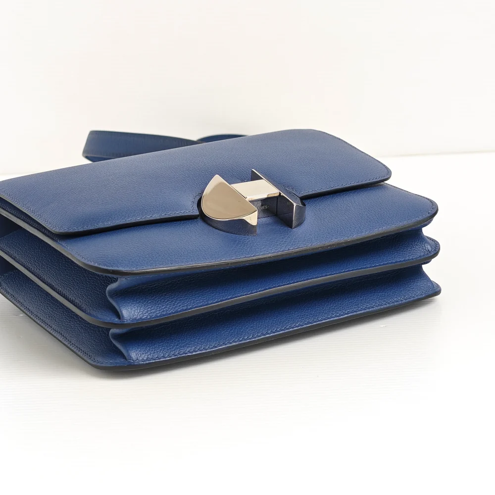 A close relative of the coveted Constance, it features a sleek flap closure with a rounded H buckle and an adjustable strap for shoulder or crossbody wear.