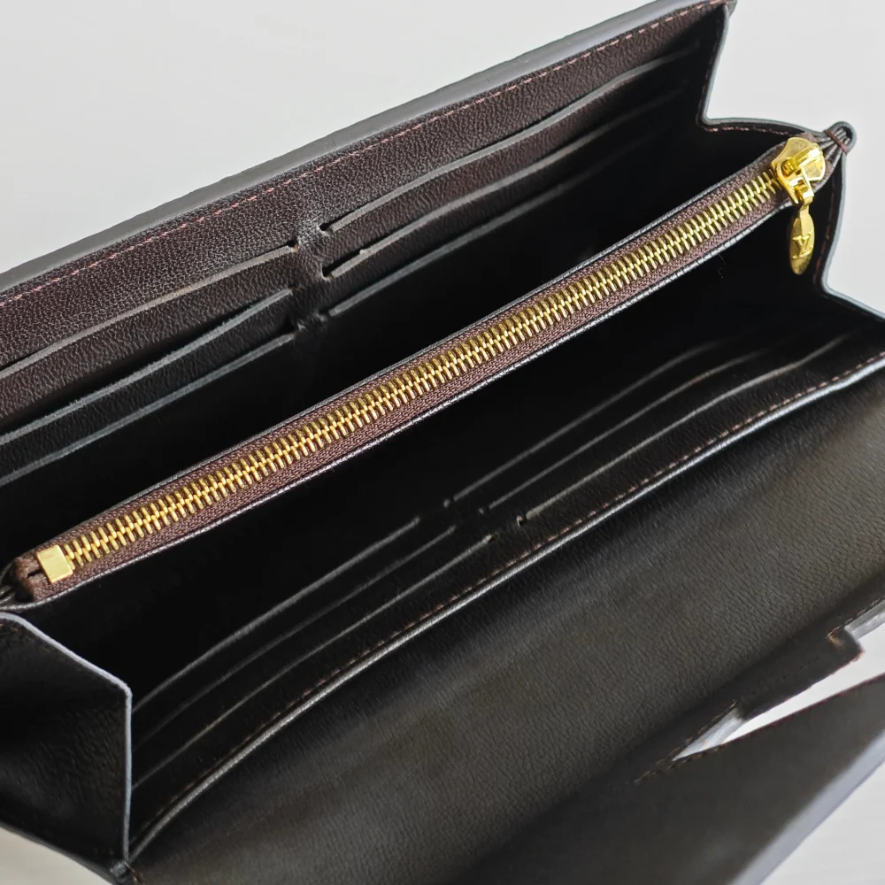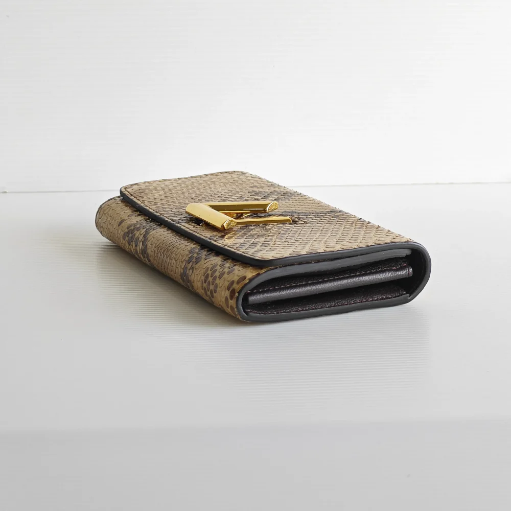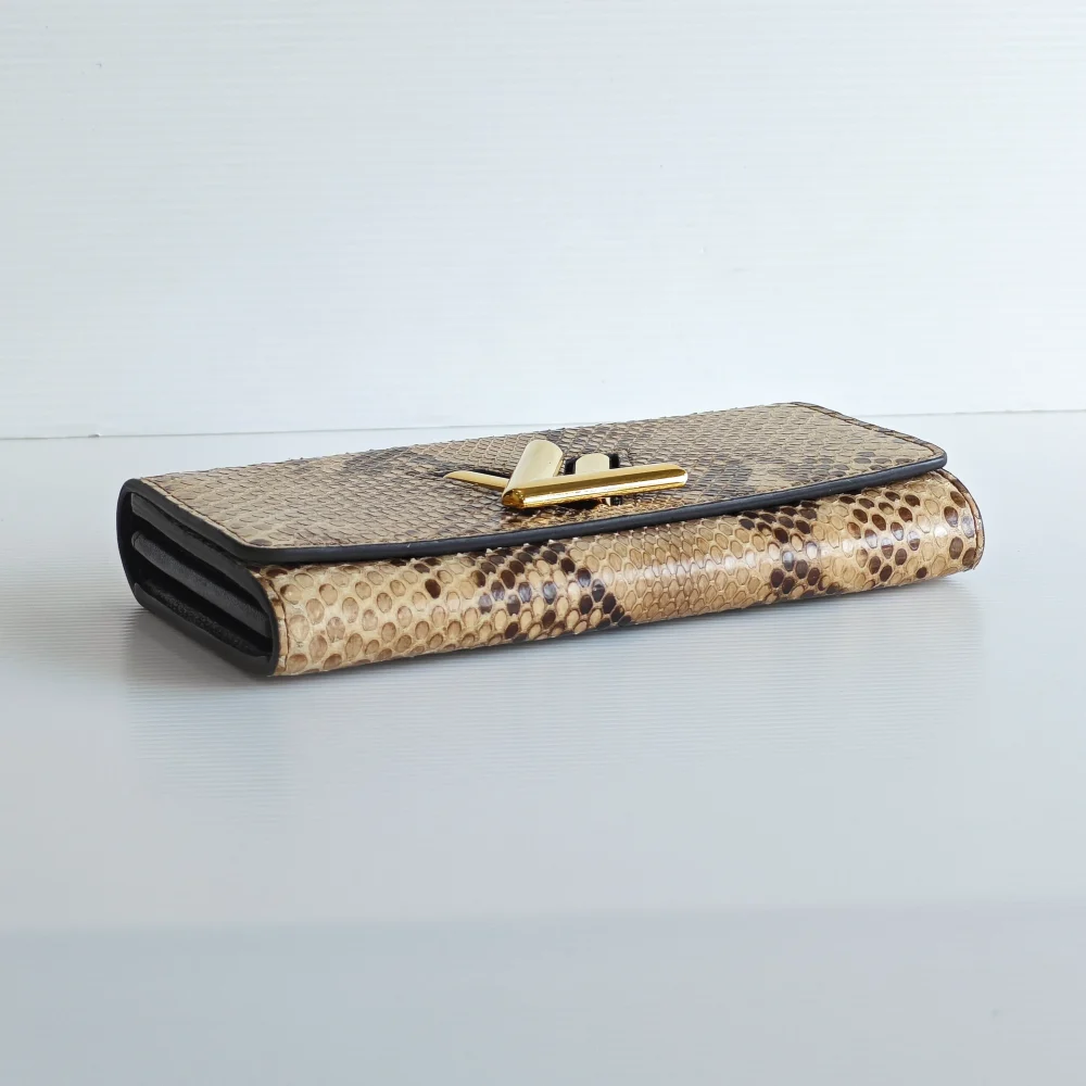 Extended from the Louis Vuitton Twist bag collection, this beautiful wallet also features the gleaming “twist” lock which will lead you into its multi-compartments interior. Bank notes, cards, coins and receipt papers will all find their own dedicated slots inside.