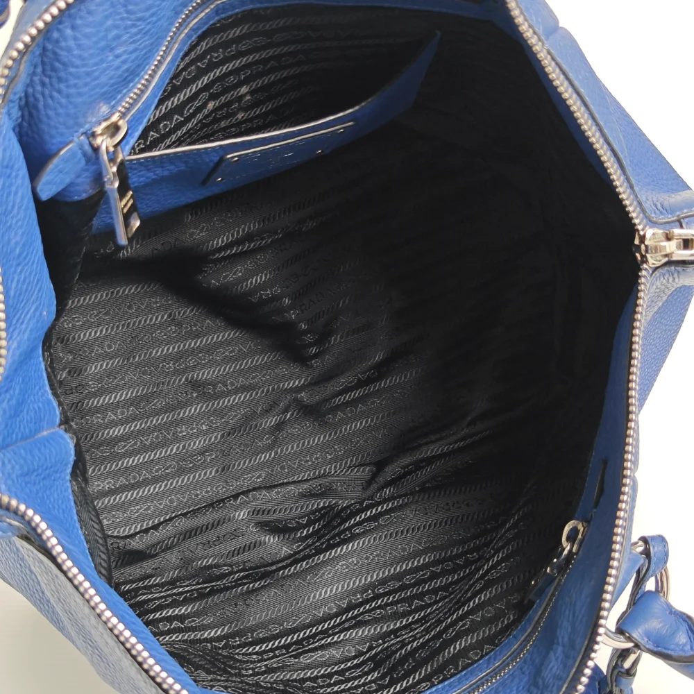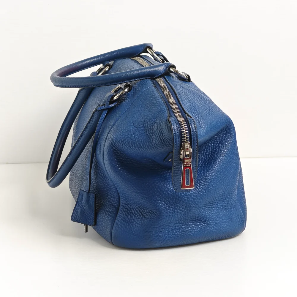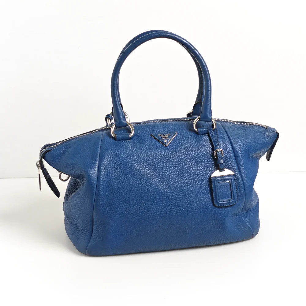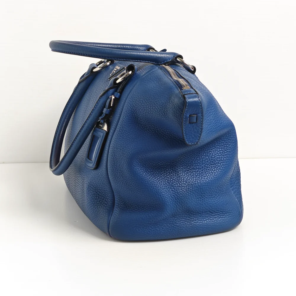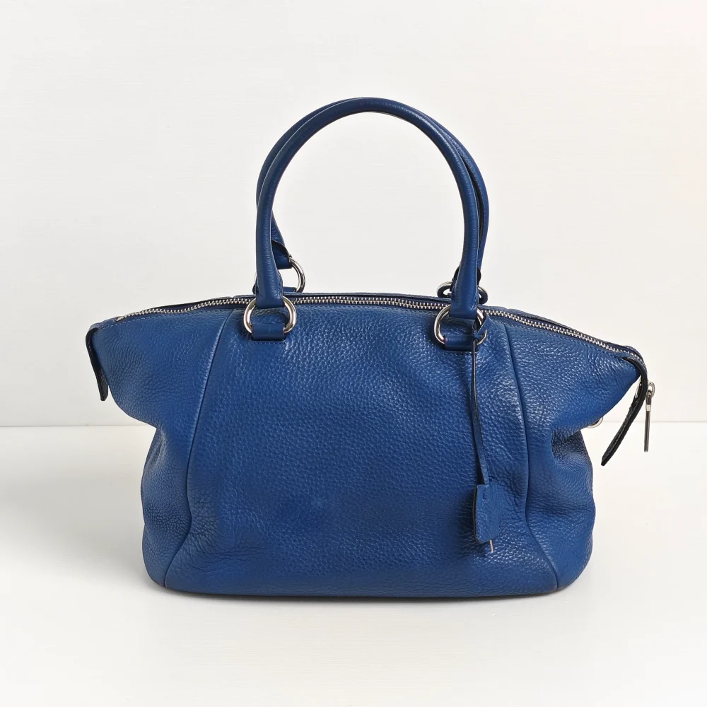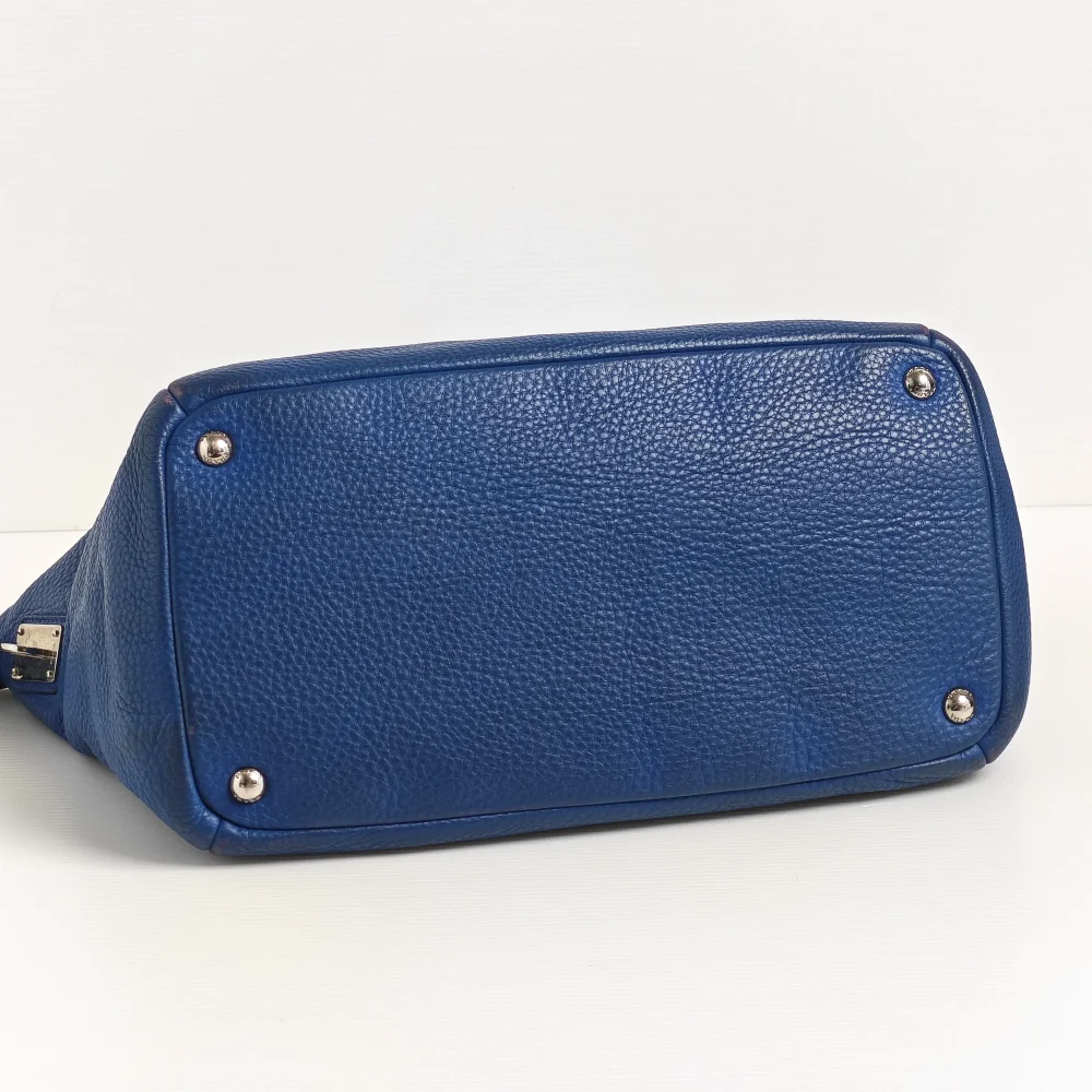- Blue ‘Vitello Daino’ grained calfskin leather.