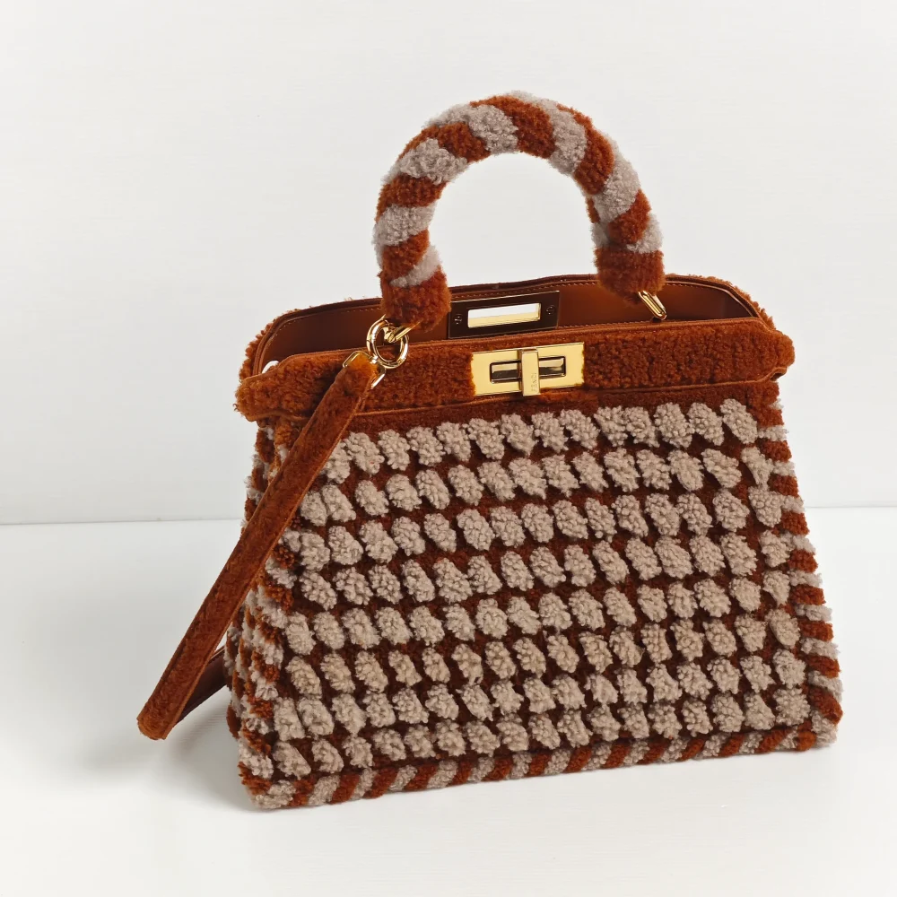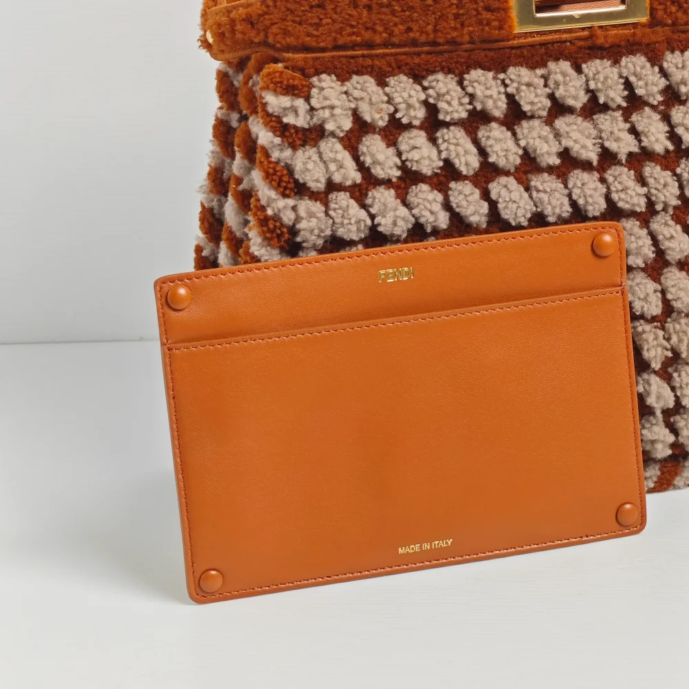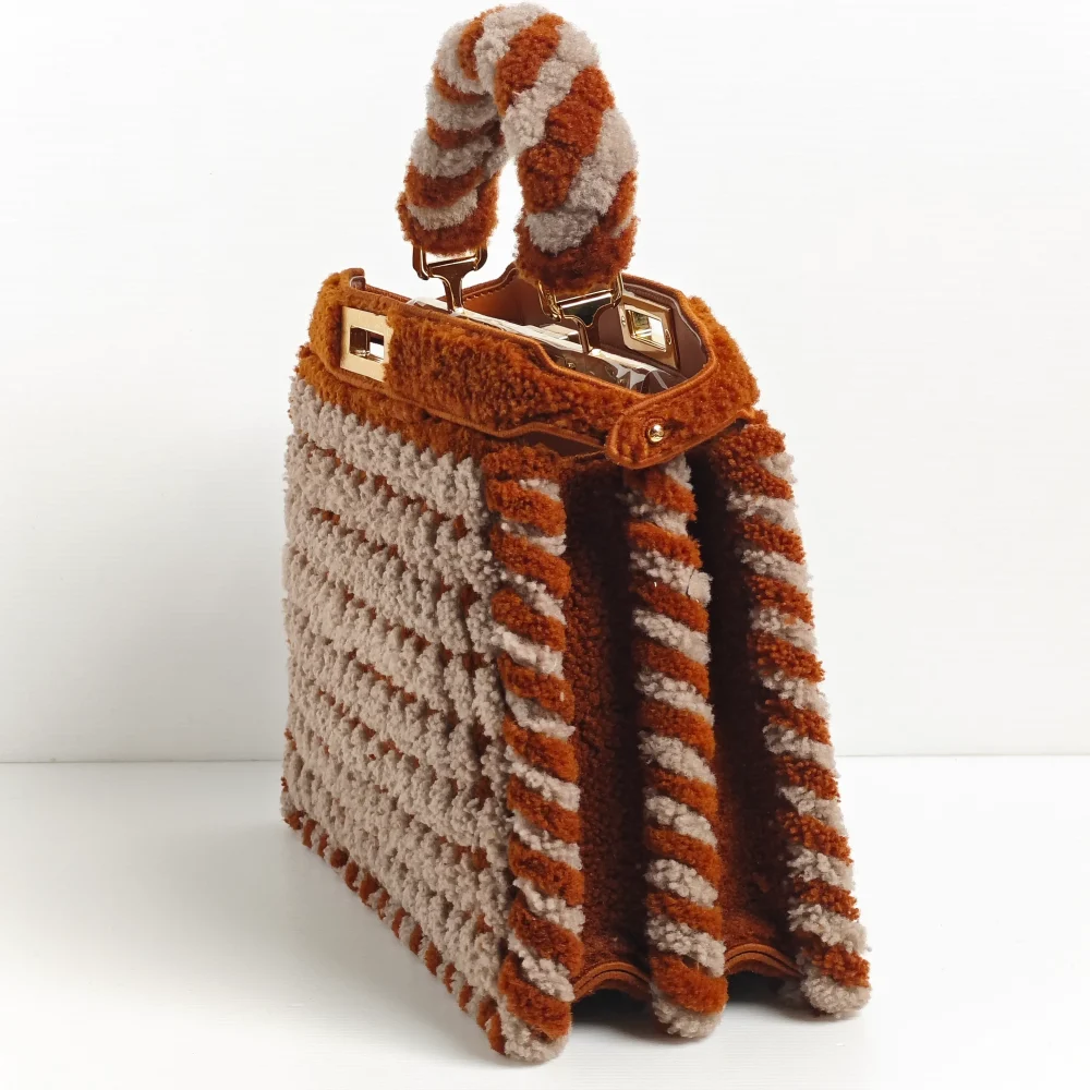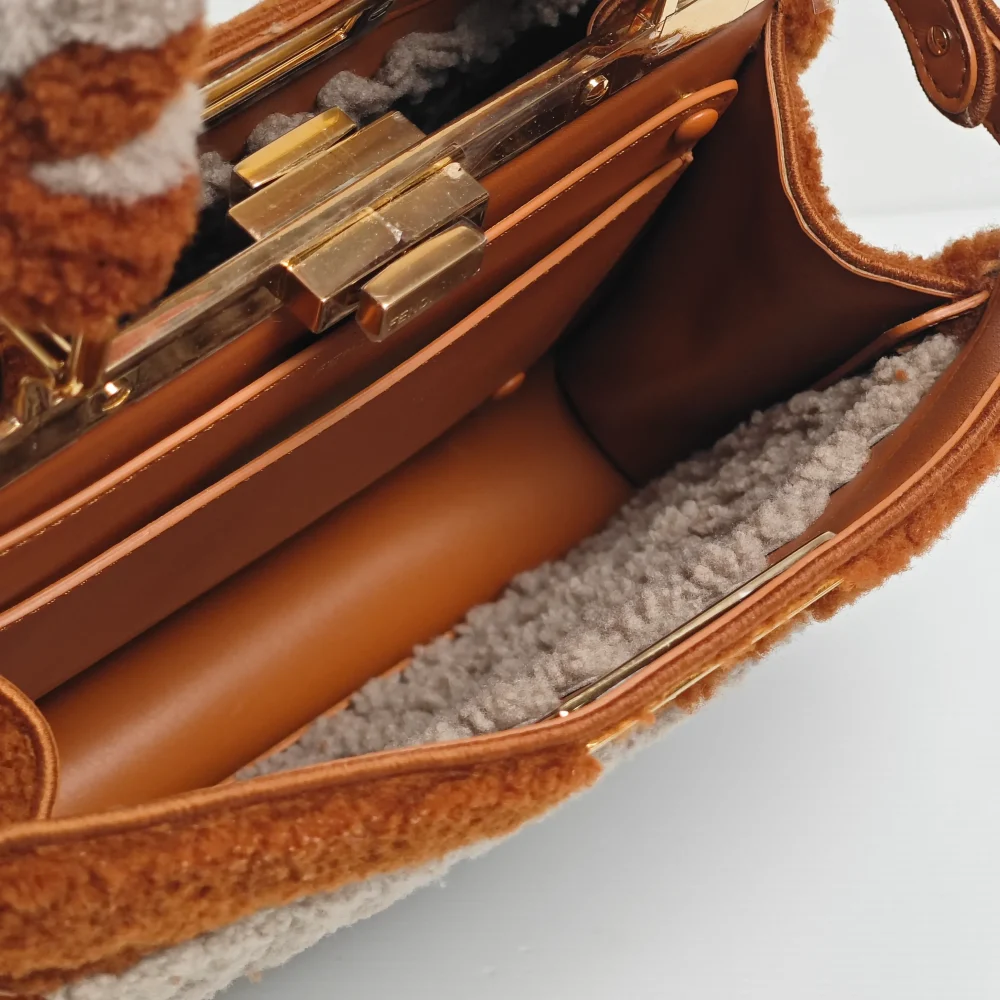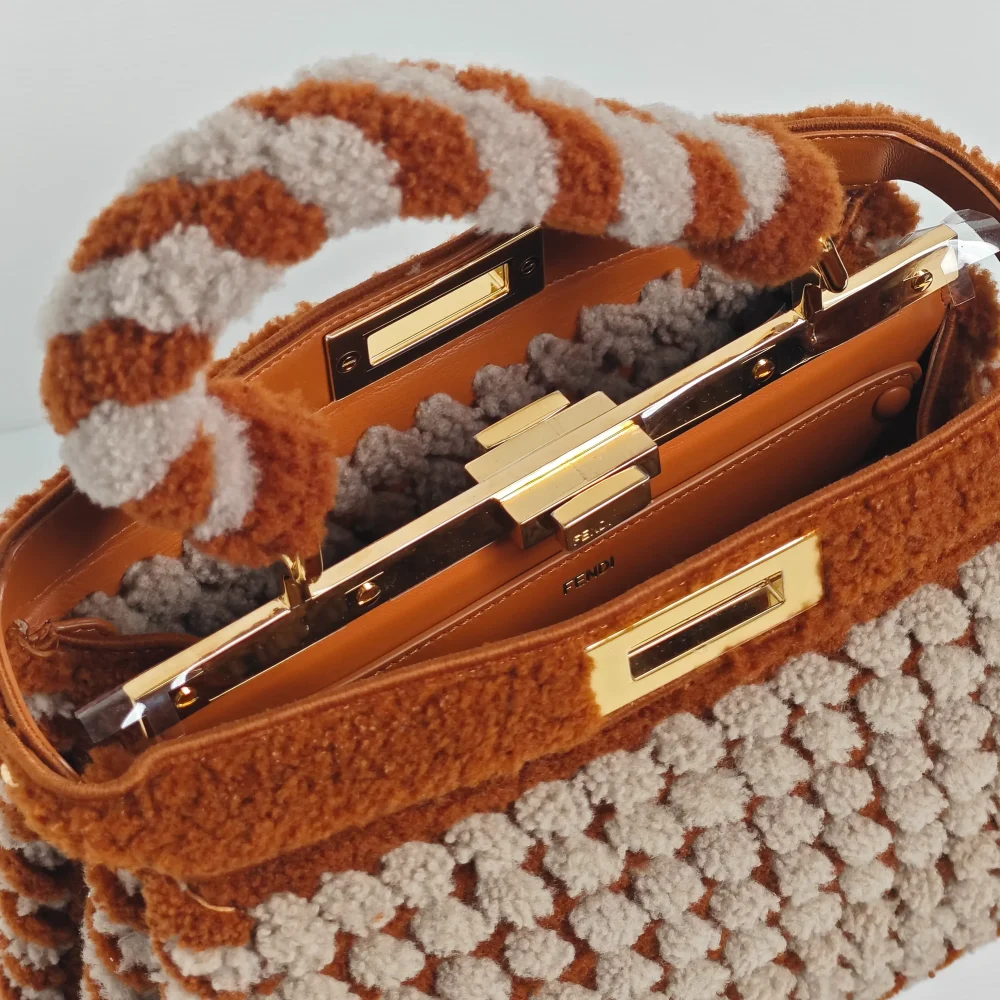 The privilege being Fendi’s premier icon is, it gets to be dressed up and refreshed every season. From fall winter 2023 collection, this ISeeYou Peekaboo is fully dressed in brandy brown + taupe grey sheep shearling fur, it was retailed for almost RM30k.
